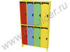 Компактные 2-ярусные шкафы для детской одежды предназначены для небольших раздевальных помещений. Каждая ячейка шкафа оборудована полками для головного убора и обуви и двумя крючками из твердой пластмассы для верхней одежды.