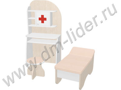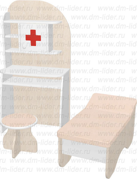 Используемые материалы: ламинированное ДСП толщиной 16 мм со стойким покрытием против воздействия воды и моющих, дезинфицирующих средств, защищенное кромкой ПВХ 0,4; 2 мм. Ножки и сиденье табурета защищены противоударной кромкой ПВХ (Т16-2 мм). Тип материала ручки на фасаде трюмо пластик, ручка в форме грибка.