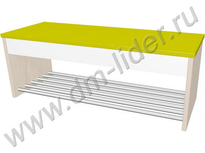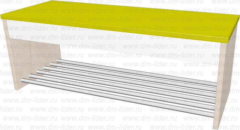 Габаритные размеры: 794х299х300 мм. Скамейка задвигается под шкаф. Используемые материалы: ламинированное ДСП толщиной 16 мм со стойким покрытием против воздействия воды и моющих дезинфицирующих средств, кромка ПВХ 0,4 мм, сидение – кромка ПВХ 2 мм. Крепеж: евровинт 7х50 мм. Низ корпуса скамейки оборудован полкой под обувь из металлической круглой трубы диаметром 16 мм и наконечниками пластмассовыми 36х20 мм (подпятники), которые препятствуют попаданию влаги под скамейку.