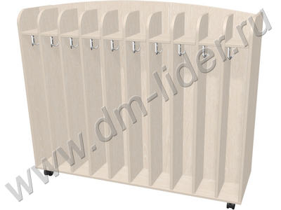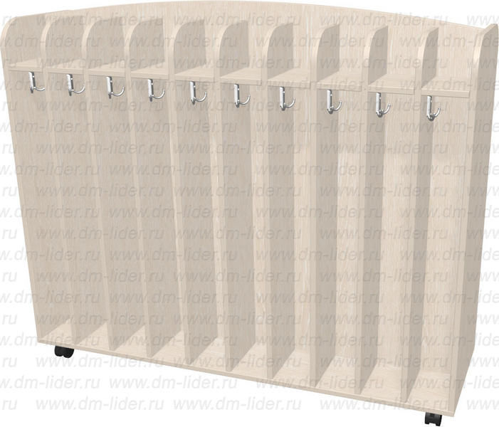 Габаритный размер: 1306х404х1098 мм. Двусторонний стеллаж для полотенец. Состоит из дна, двух боковых стенок (которые также являются и ограничителями у полок) и разделительной фрезерованной панели. Разделительная панель имеет дугообразный верхний край и выступает над боковинами. Внутреннее пространство полотенечницы разделено вертикально на одинаковые ячейки. Каждая секция комплектуется горизонтальной полочкой в верхней части. Количество крючков двухрожковых для полотенец 20 шт. Количество ячеек 20 шт. Используемые материалы: ламинированное ДСП толщиной 16 мм со стойким покрытием против воздействия воды и моющих, дезинфицирующих средств, защищенное кромкой ПВХ 0,4; 2 мм. Опоры колесные поворотные со стопором.