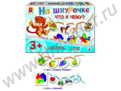 В игре 48 вырубных круглых деталей (есть детали с обобщённым рисунком по теме: овощи, фрукты, транспорт, дикие и домашние животные, мебель, посуда и т.д. и есть детали, на которых изображения предметы, относящиеся к этим темам), в каждой из которых есть два отверстия для шнурочка. Далее в игре имеется 6 карточек, на которых есть наложенные друг на друга силуэтные изображения разных цветов и 2 шнурочка разного цвета. В игре множество вариантов. Детям необходимо собрать на шнурочек предметы одной группы. Другой вариант: используя 6 карточек, собрать на шнурочек только те детали, силуэты которых есть на карточке.В игре предлагается 7 вариантов игр: «ПОДБЕРИ ПО ГРУППЕ», «КТО СПРЯТАЛСЯ?», «ЧЕТВЁРТЫЙ ЛИШНИЙ», «ЧТО ИЗМЕНИЛОСЬ? ЧЕГО НЕ СТАЛО?», «MEMORY» или «ПАРОЧКИ», «ЗАГАДКИ», «ЛОГИЧЕСКИЕ ЦЕПОЧКИ». Предлагаемая развивающая игра предназначена для индивидуальных и подгрупповых занятий с детьми от 3 до 7 лет дома, в детском саду и студиях детского развития. Игра поможет малышам расширить кругозор, пополнить словарный запас, научиться обобщать, развить мелкую моторику рук и зрительное восприятие. Игра разработана в соответствии с требованиями ФГОС. Комплектность: детали - 48 шт, карточки - 6 шт, шнурки - 2 шт, правила.