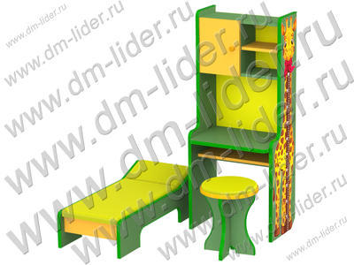 Комплект игровой мебели «Больница» прекрасно подойдет для сюжетно-ролевых игр, которые закрепят и систематизируют знания о труде взрослых: профессиях врача, медицинской сестры, а также помогут развить у ребёнка трудовые навыки, навыки самообслуживания, заботливого отношения, аккуратность. Стойка с нарисованным ростомером в виде жирафа и табурет предназначены для детей. На кушетку можно положить «больную» куклу: измерить температуру, послушать и т.п.