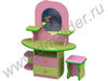 Оригинальная и компактная парикмахерская является прекрасным пособием для сюжетно-ролевых игр, поможет детям развить творческие навыки, разнообразить фантазию, воспитать стремление к опрятности и чистоте, закрепить знания о профессии парикмахера. Уголок имеет зеркало, удобные ящики, закругленные полочки для расчесок, щеток, бутылочек. В комплект входит мягкий пуфик для посетителей.
