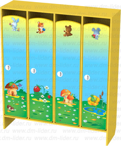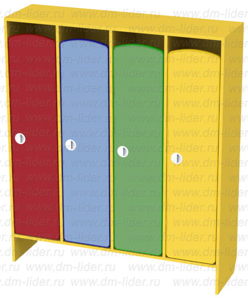 Функциональный шкаф для раздевалок детских дошкольных учреждений. Каждая ячейка шкафа оборудована полками для головного убора и обуви и двумя крючками из твердой пластмассы для верхней одежды.