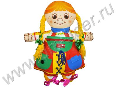 Развивающая дидактическая игрушка «Девочка» развивает зрительное восприятие, мелкую моторику рук и учит ребенка навыкам, необходимым и дома, и в детском учреждении: как можно расстёгивать и застёгивать молнию, кнопки и пуговицы на своей одежде, завязывать шнурки и бантики, и даже заплетать косички. Благодаря интересным сюжетным деталям и ярким расцветкам, развивающая дидактическая игрушка обязательно привлечет внимание малыша и станет увлекательным и полезным пособием. Материал: винилкожа (кожзам), наполнение - поролоновая крошка.