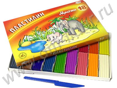 В комплект входят: пластилин, стек. Количество: 18 цветов